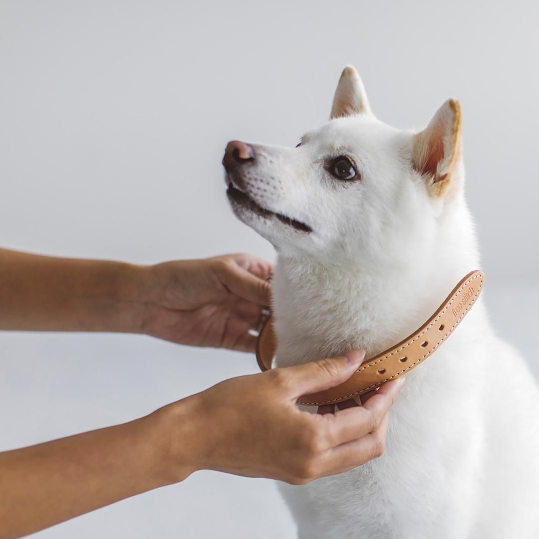 | 備考 | 【ヌメ革の特徴】 ・使用前は白っぽい色の革ですが、使えば使う程あめ色に変わってきます。 ・保管には細心の注意を払っていますが、発送時に少し触れるだけでも色が変化します。 ヌメ革の特徴ですので、あらかじめご了承ください。 ・革の特性・製造工程上、仕上り寸法が多少の誤差(5%前後)がございます。 ・首回りと下げ札表記は、全て平置寸法での記載となっており、輪っかにした際の内周は表記よりも2~4cmほど小さくなります。革の特性上、ご使用いただくうちに伸びますが、サイズ選びの際はご注意ください。 ※【2018年9月】仕様変更のお知らせ※ Mサイズ?LLサイズの巾が以前のものより太くなります。 予めご承知の上、ご注文いただきますようお願いいたします。 |