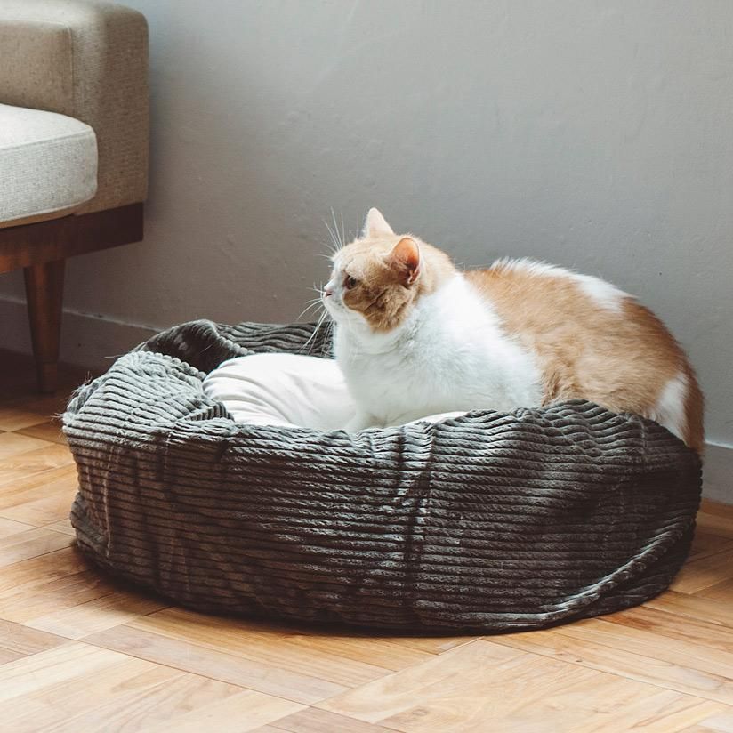 コーデュロイ生地の特性上、粘着性のあるテープ(ガムテープや粘着カーペットクリーナー)でのペットの毛やほこり取りは、パイル面(生地の表側)が抜けてしまいます。また強い接触やパイル面を引っ張ると毛抜けの恐れがあるため、ご注意ください。 多少色落ちしますので、湿った状態での摩擦は、カーペット等の他の生地に色移りする場合がございますので、十分にご注意下さい。 【日頃のお手入れについて】 ・ペットの毛やほこりを取る際は、柔らかいブラシで毛並みに沿って取り除いてください。 ・漂白剤は色落ちする可能性がございますので、ご使用しないでください。 ・本体クッションは浸け置き洗いをおすすめいたします。 |
