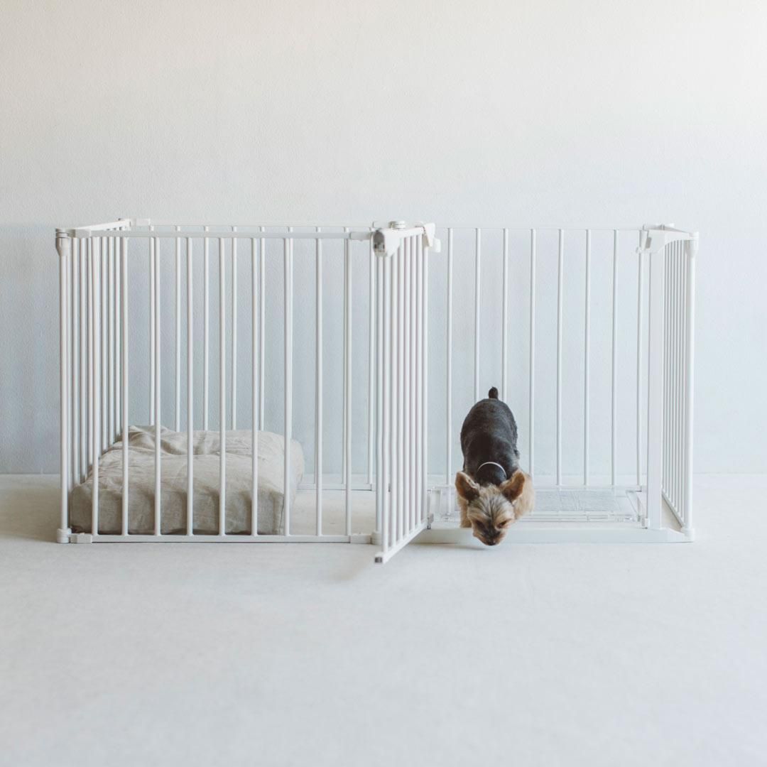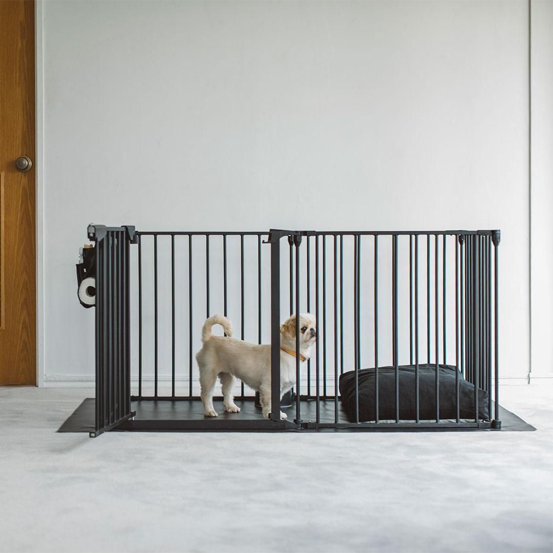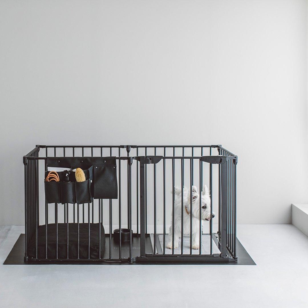すでに設置していたスカンジナビアンペットサークルは追加パーツにより広く常時設置をして、長時間のお留守番や就寝時に2頭の生活空間を分けるためにスタイリッシュドックサークルを臨時設置する形にしました。お部屋の雰囲気にも合っていて気に入っています。