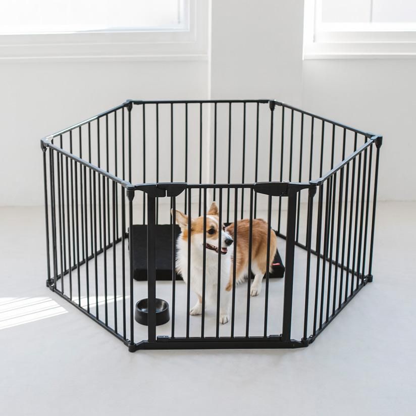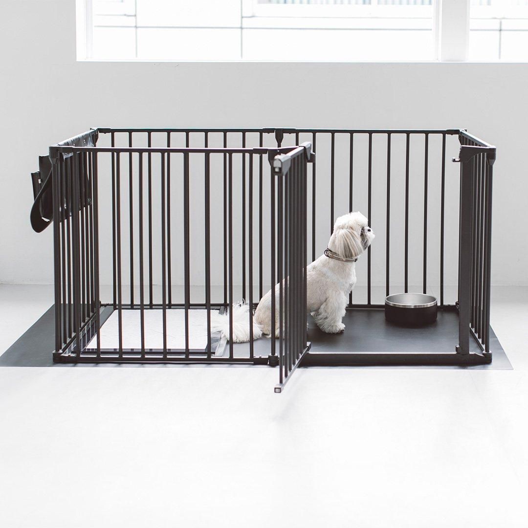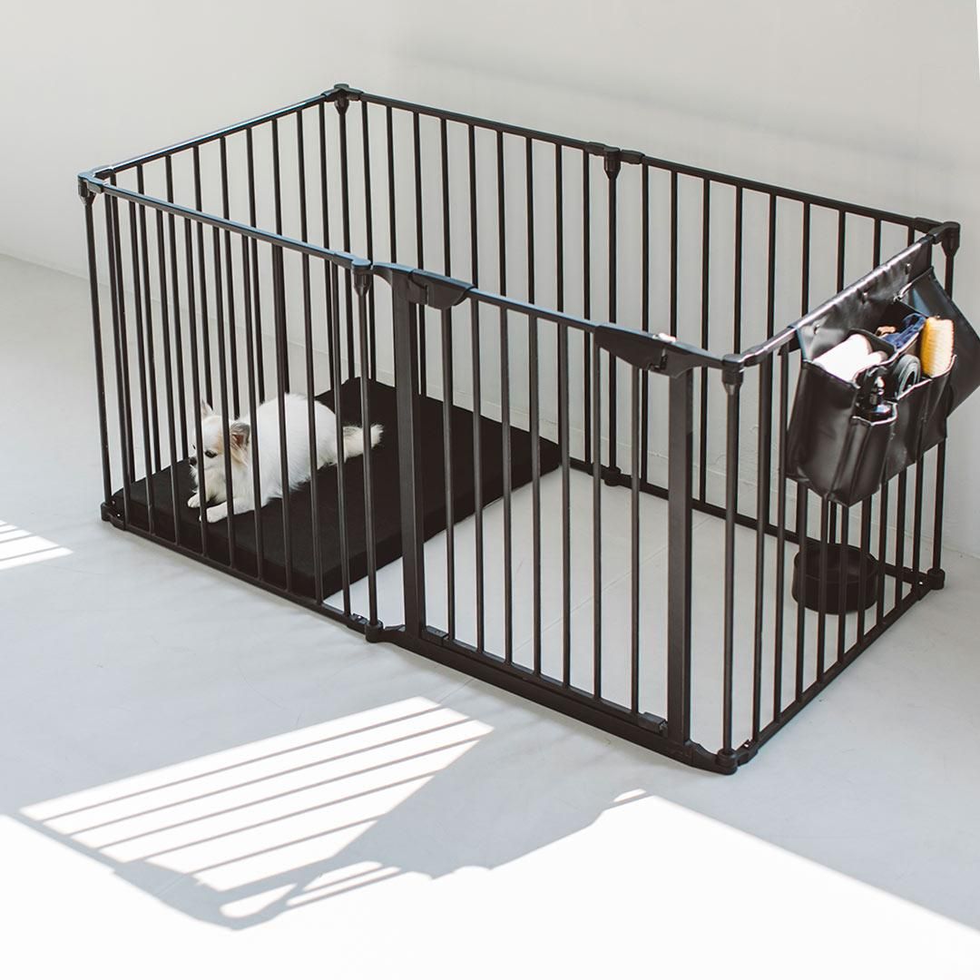すでに設置していたスカンジナビアンペットサークルは追加パーツにより広く常時設置をして、長時間のお留守番や就寝時に2頭の生活空間を分けるためにスタイリッシュドックサークルを臨時設置する形にしました。お部屋の雰囲気にも合っていて気に入っています。