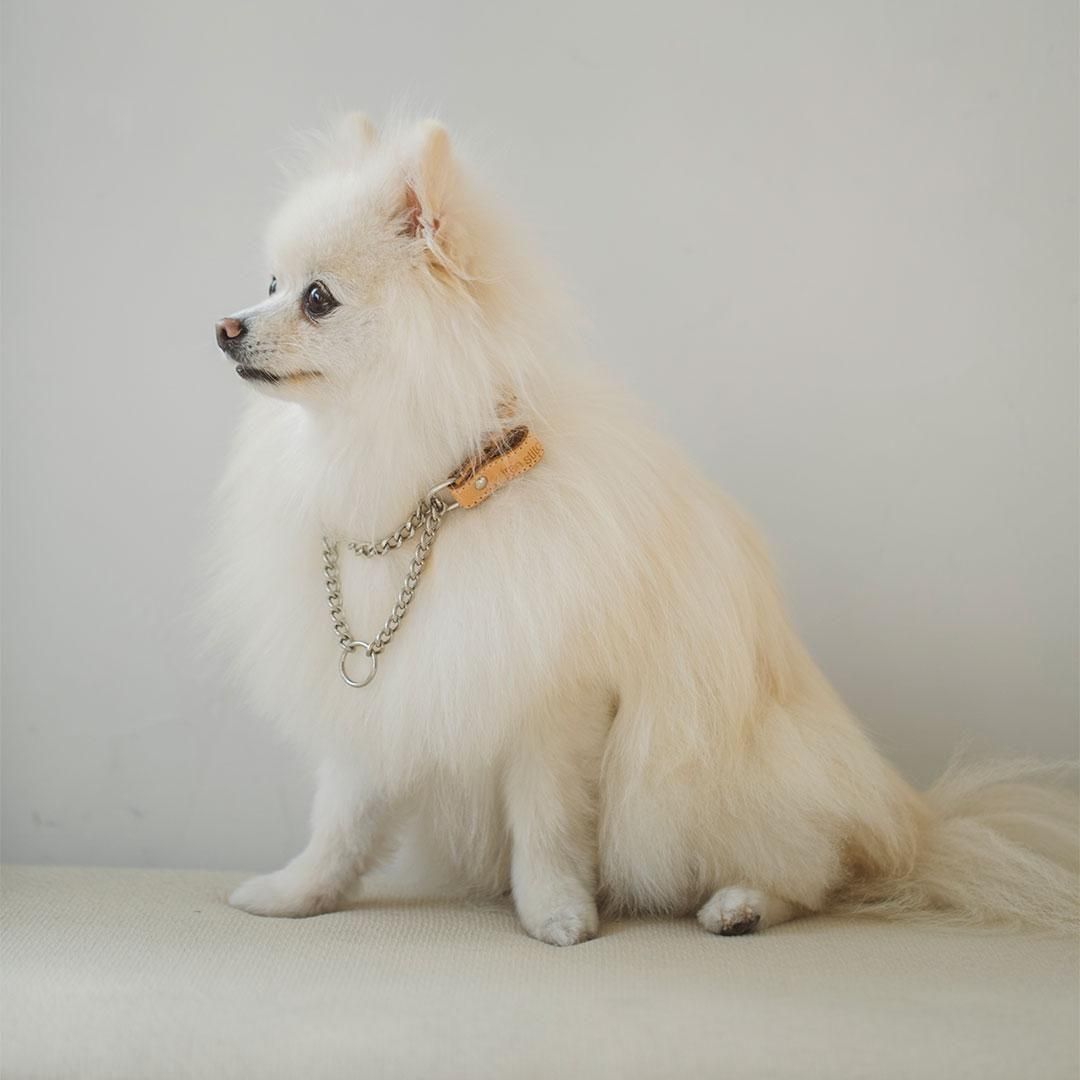 白や明るい毛色のワンちゃんにご使用する場合、チェーンメッキの加工方法の影響により、ご使用方法によっては毛が黒ずんでしまう可能性がございます。