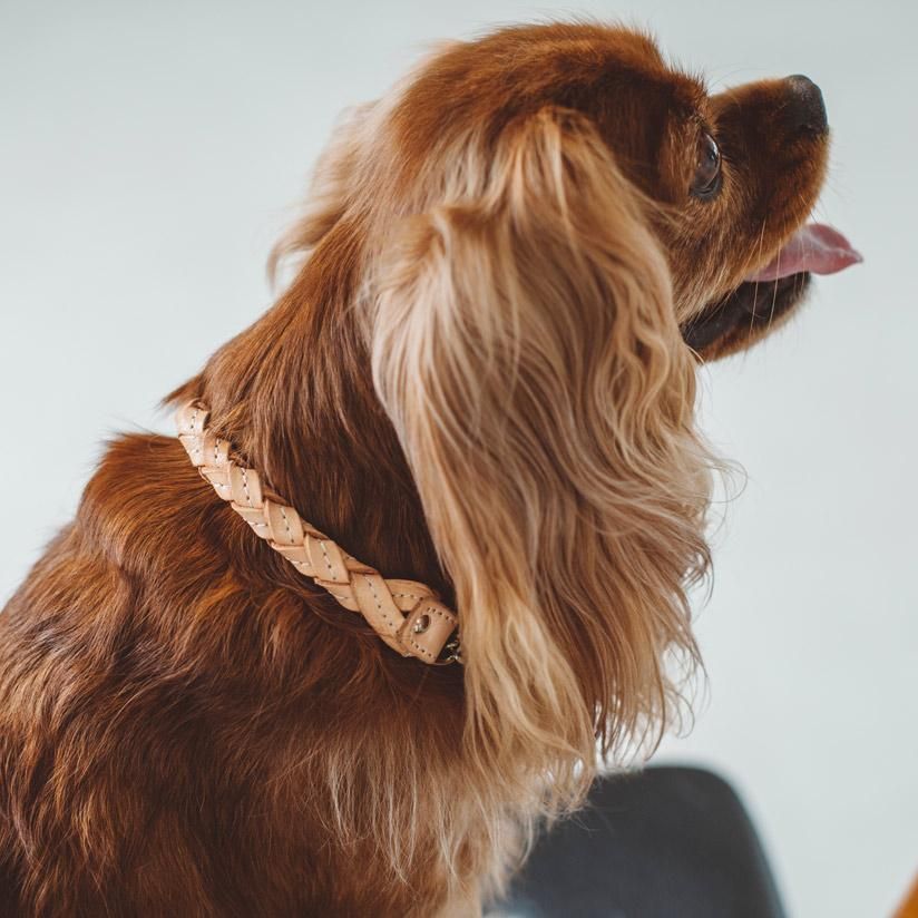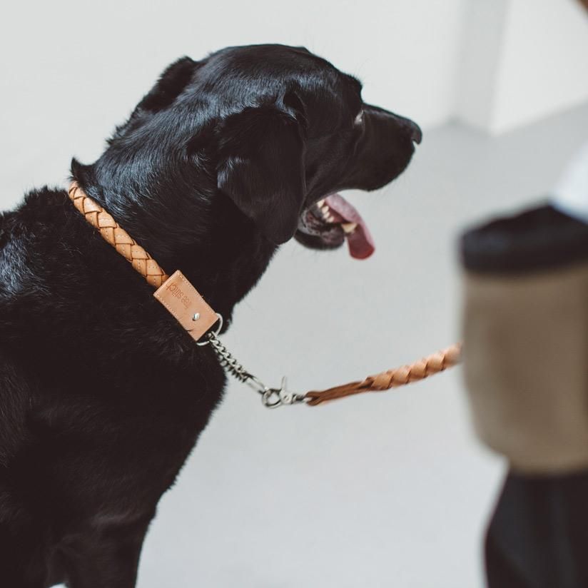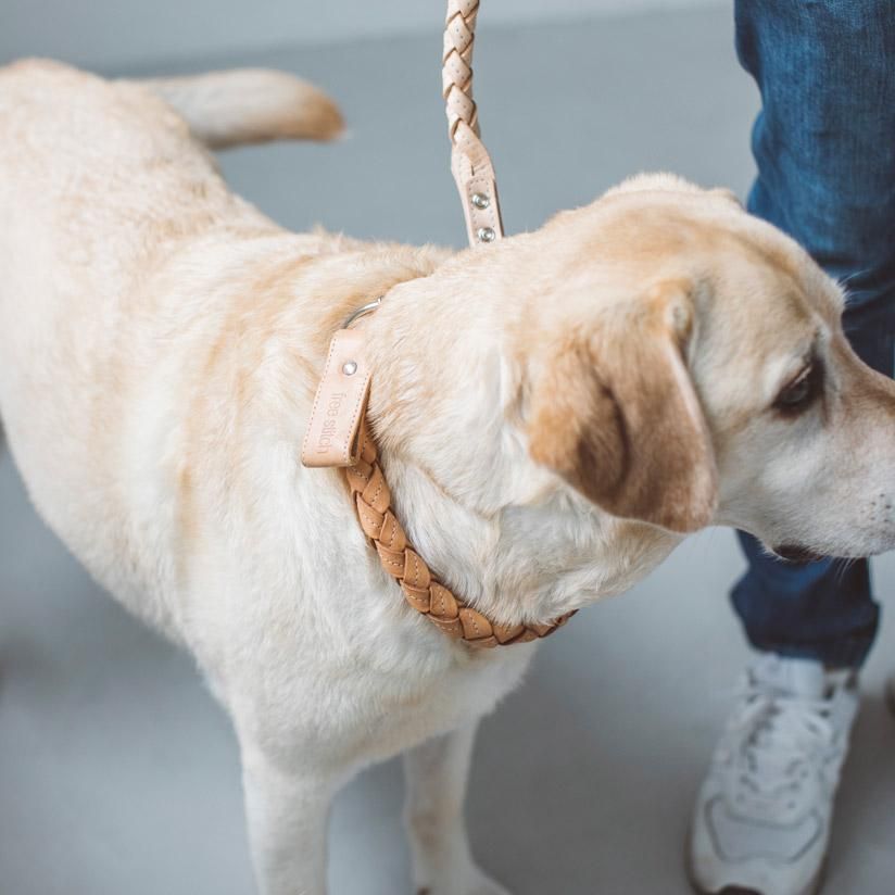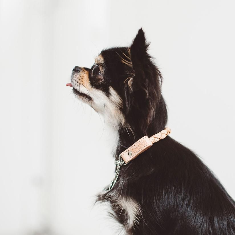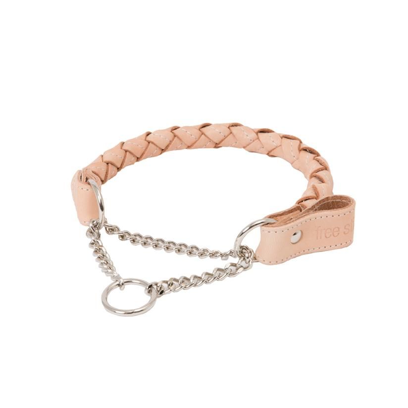free-stitchオリジナルのシンプルなハーフチョーク。人気のヌメ革を編み込んでで作り上げた逸品です。 アメ色に変わっていく様子を愛犬の成長と一緒に楽しんでみませんか。