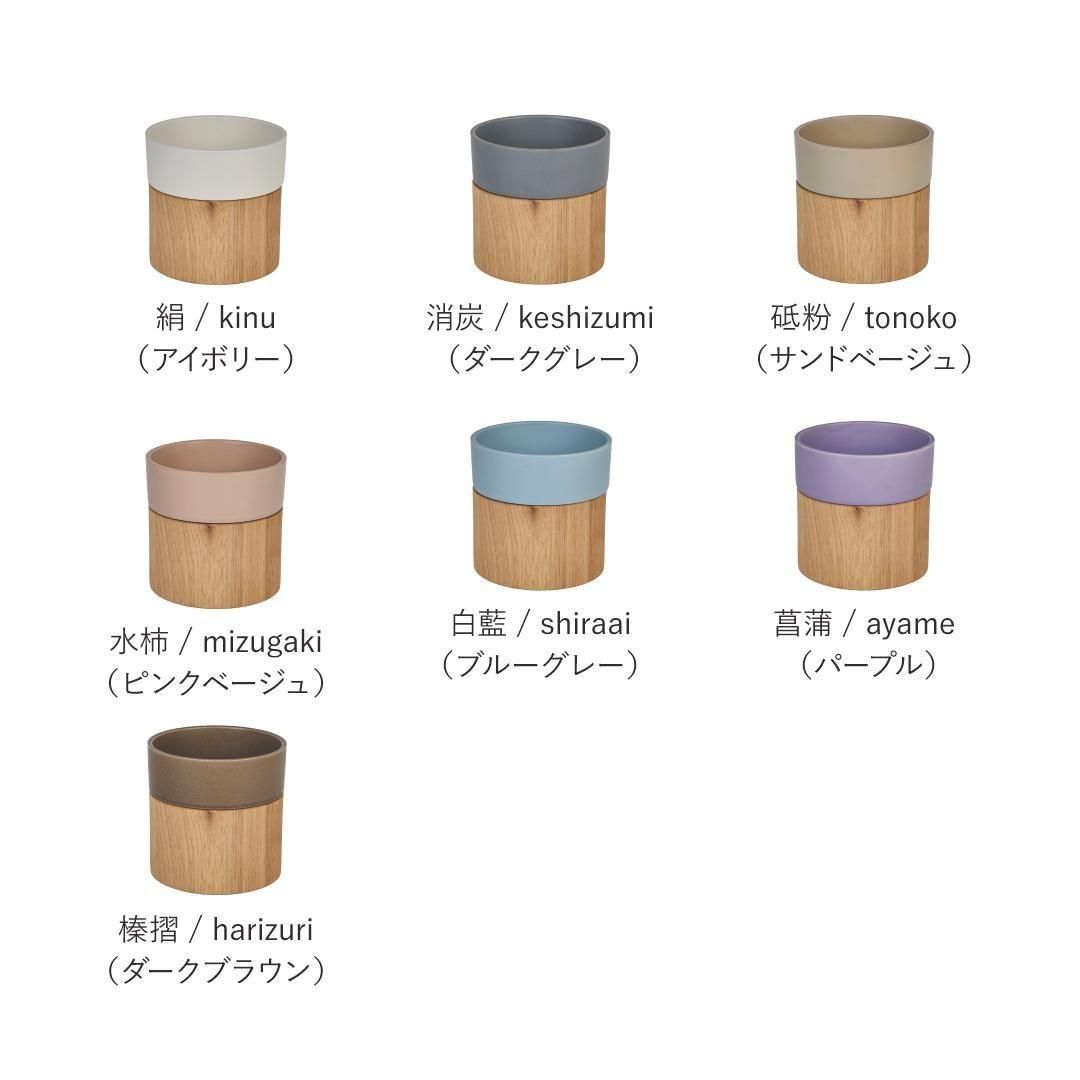| カラー | 絹 / kinu(アイボリー)・砥粉 / tonoko(サンドベージュ)・水柿 / mizugaki(ピンクベージュ)・白藍 / shiraai(ブルーグレー)・菖蒲 / ayame (パープル)・消炭 / keshizumi (ダークグレー)・榛摺 / harizuri(ダークブラウン) |