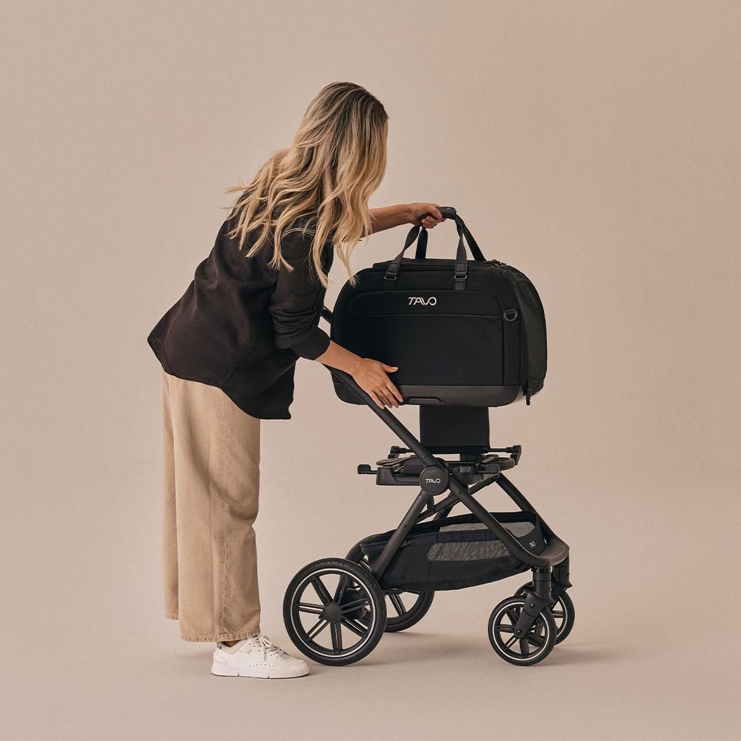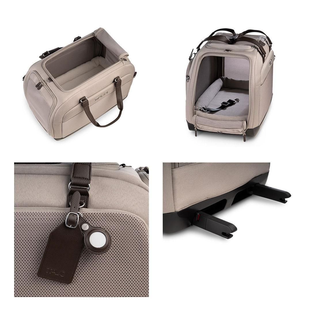 ・取り外し可能なショルダー(斜め掛け)キャリーストラップと、ラグジュアリーなヴィーガンレザーのトップキャリーハンドルを備え、持ち運びが快適です。