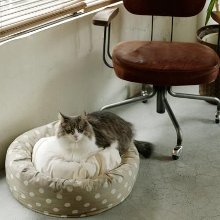 内側のクッションは取り外し可能なので、オーナーのお好みでお使いいただけます。クッションカバーはオーガニックコットン100%を使用しているので愛猫にとっても優しいのです。 また、洗濯OKなのでいつでも清潔にお使いいただけます。