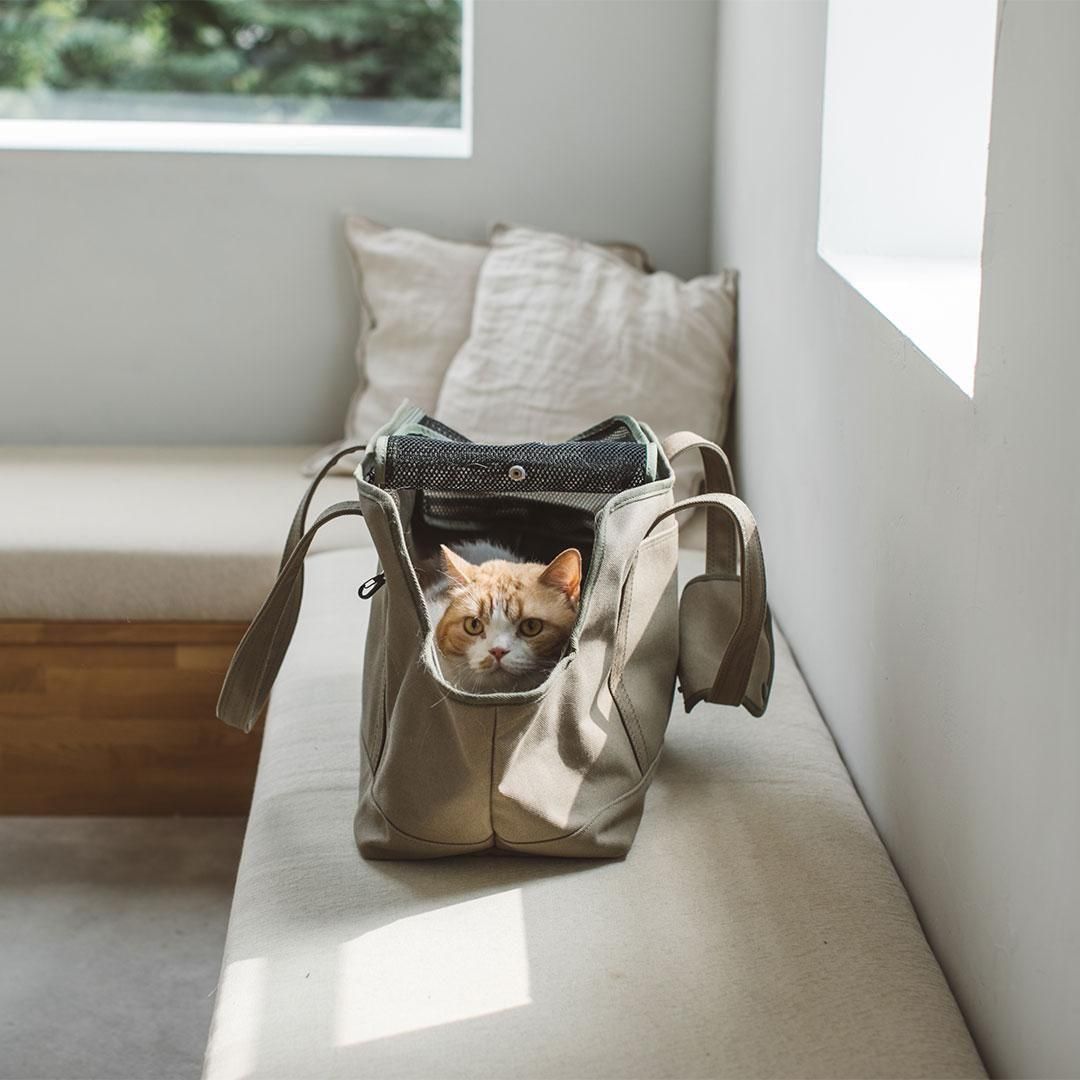 フタ部分がメッシュなので公共機関の移動にも便利です。メッシュ蓋を使わないときは底敷の下にしまえてスッキリ、どんどん使っていい味になったバックをネコちゃんとお楽しみください。